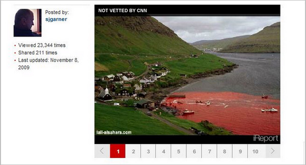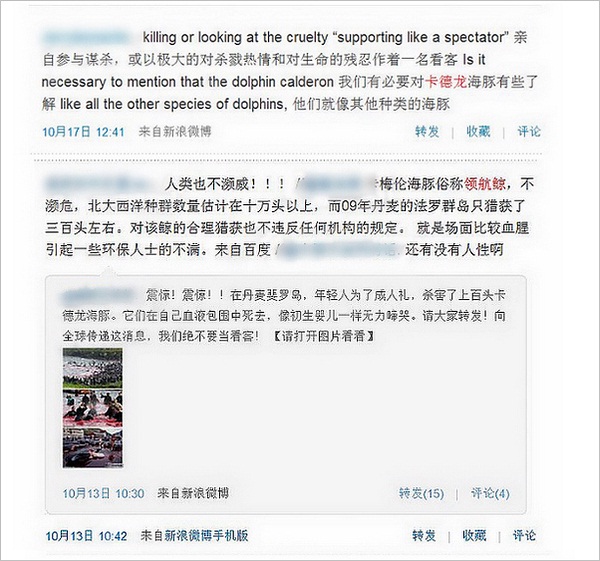 Ent:古生物学博士生,科学松鼠会成员(题图:控诉丹麦人屠杀卡德龙海豚的连环信中的一张图片,为了避免引起部分读者不适,图片作黑白处理) 2010 年 7 月前后,有一则控诉丹麦人屠杀卡德龙海豚( Ca