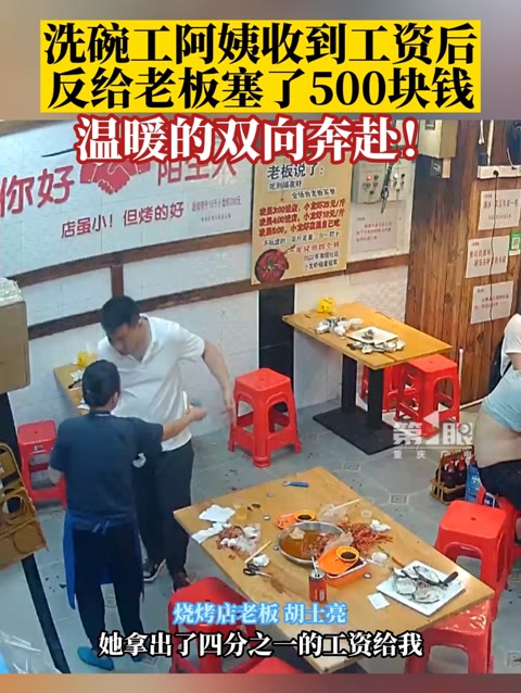 36次播放 | 00:04饭店阿姨收到老板发的工资后,抽出500元强行塞给老板称请他吃饭