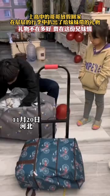 32次播放 | 00:21上高中的哥哥放假回家,在层层的行李中扒出给妹妹带的礼物,妹妹也做了礼物送哥哥,礼物不在多好,贵...