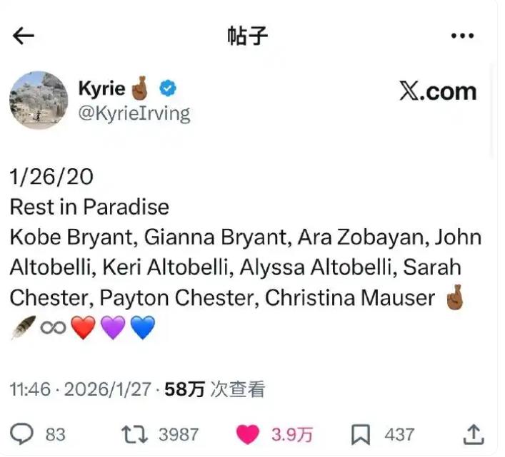 六年了,我头像还是科比,你呢? 今天刷到娜塔莉亚发的照片,就一张旧图,配了个红心,我眼泪一下子就下来了。 时间过得真快,又好像一点没走。那天也是1月26号,加州起大雾,直升机就这么没了。 带走了科比,