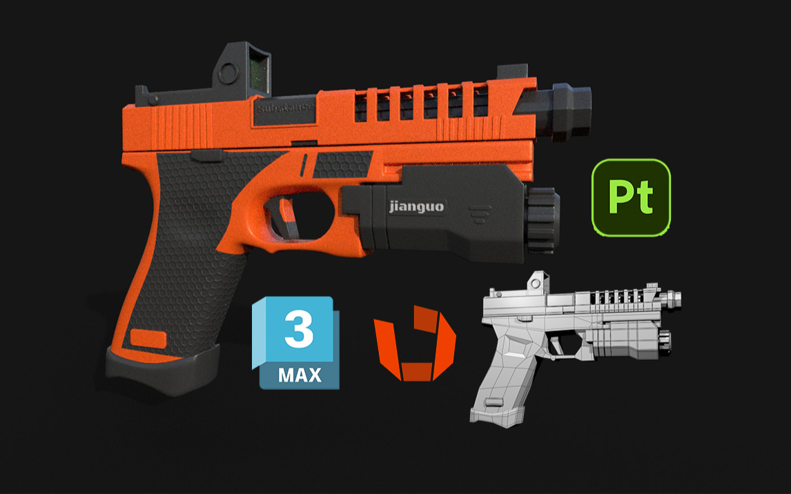 0次播放 | 02:29:01【3dmax武器建模】次世代Glock手枪模型制作教程。模型+uv+pt材质全流程讲解,3d建模基础