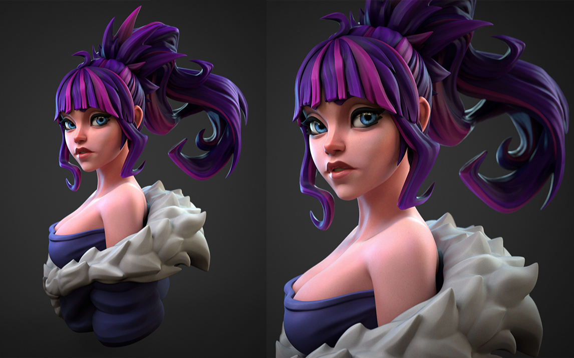 ZBrush-风格化单马尾少女角色模型制作教程。zbrush角色雕刻教程