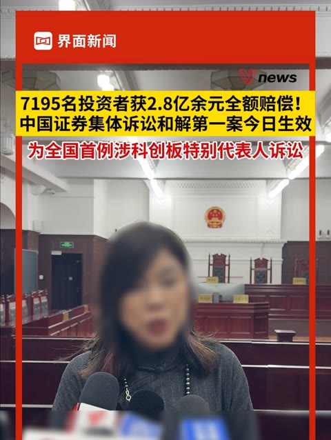 20次播放 | 03:307195名投资者获2.8亿余元全额赔偿! 集体诉讼和解第一案今日生效,为全国首例涉科创板特别...
