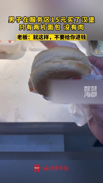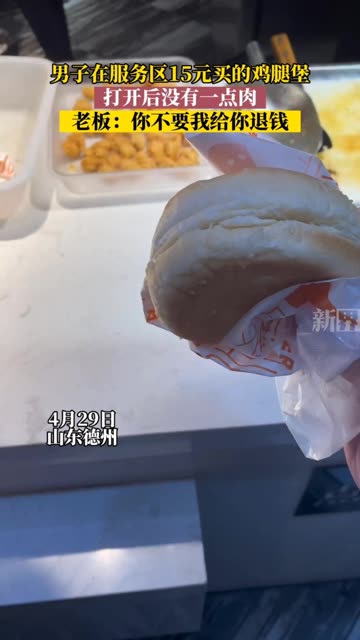 22次播放 | 00:144月29日,山东德州,男子服务区买汉堡,十五元到手就两片面包,老板:你不要我给你退钱。