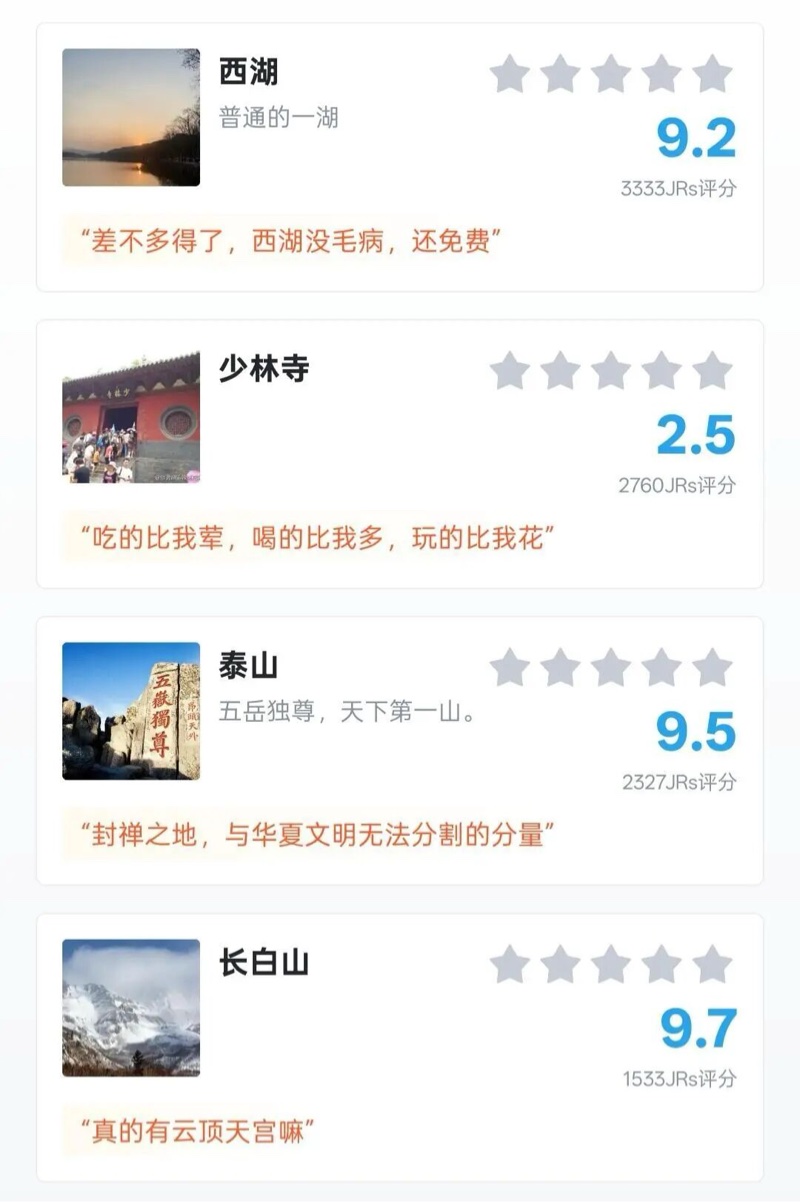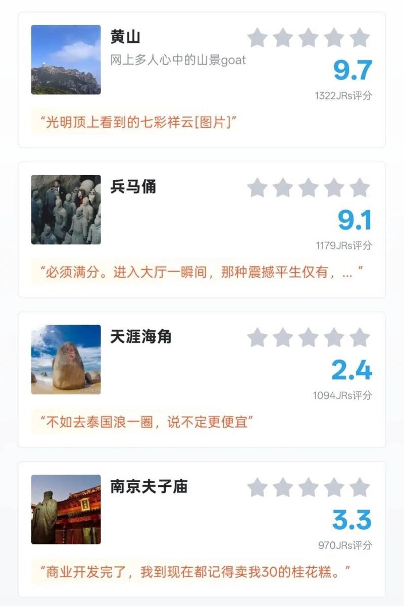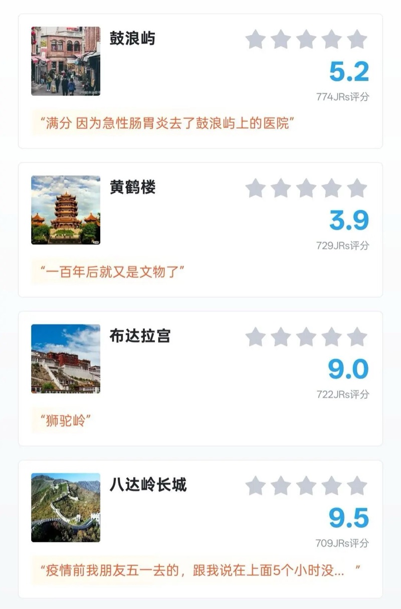“国内最令人失望的景点”评分