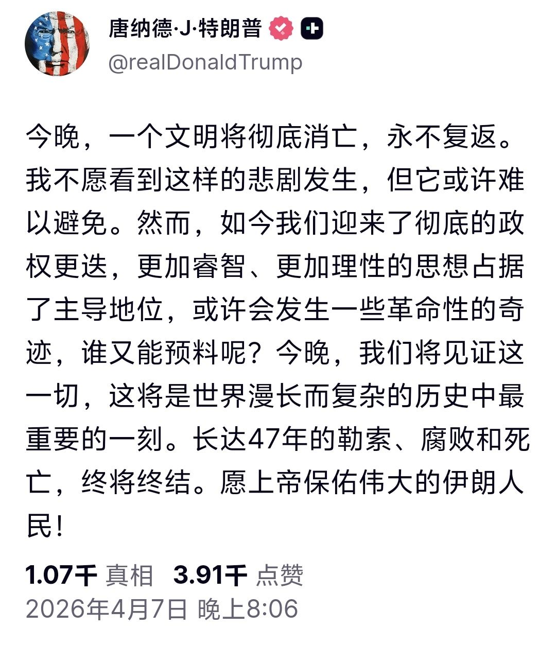 (一) 这是开战以来,美国最糟糕的24小时了。 4月3日,伊朗最活跃的强硬派、伊朗议会议长卡利巴夫,发了一条推文: “在连续37次击败伊朗后,他们发起的这场精彩无策略的战争,如今已从‘政权更迭’降级