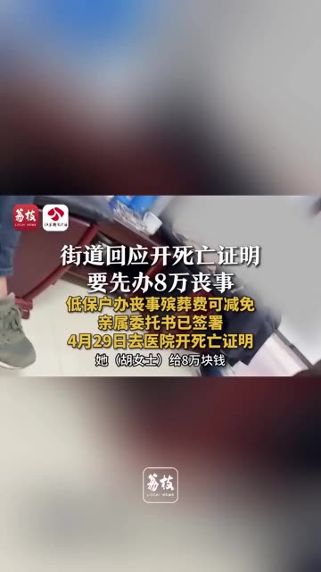 0次播放 | 10:48街道回应开死亡证明 要先办8万丧事 低保户办丧事殡葬费可减免 亲属委托书已签署 4月29日去医...
