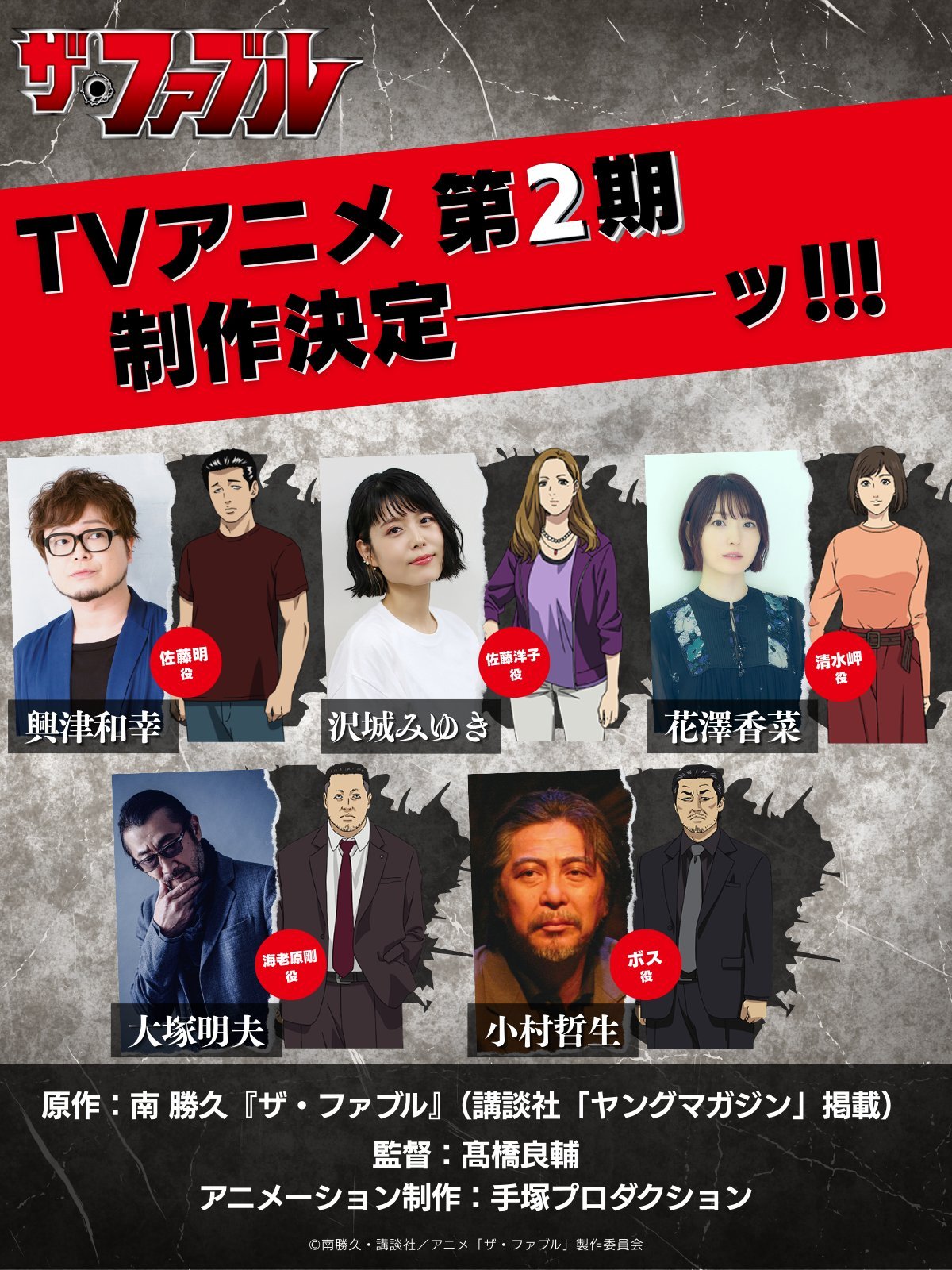 电视动画《杀手寓言》宣布制作第二季,并公开先导视觉图,详情待后续发表!【STAFF】原作:南勝久「ザ·ファブル」(講談社·ヤングマガジン」掲載)导演:高桥良辅动画制作:手冢Production【