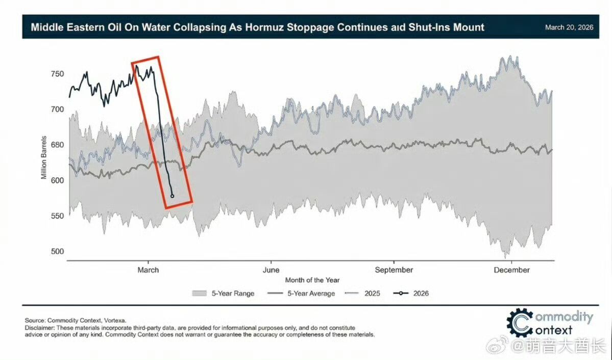 海上石油存量数据图显示,中东海上原油突然被某个匿名买家买走了1.75亿桶,约占当前中东海上原油总量的60%