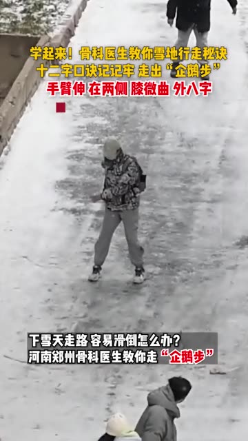 0次播放 | 03:12学起来!骨科医生教你雪地行走秘诀,十二字口诀记记牢,走出“企鹅步”:手臂伸,在两侧,膝微曲,外...
