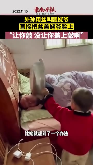 37次播放 | 00:2211月14日,安徽六安,外孙用盆叫醒姥爷,直接把盆盖姥爷脸上。家人:“让你敲 没让你盖上敲啊!...