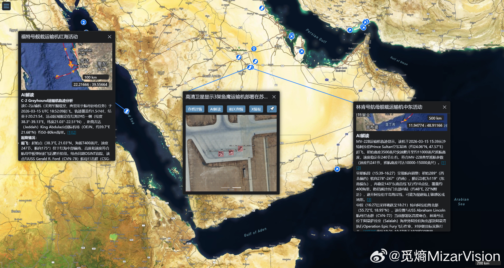 当前疑似停留在阿曼湾附近……有网友猜测,它要么是受伤不轻,需要暂时停下实施损管,要么是惧怕胡赛,不敢过曼德海峡。但无论是哪个,它当前停的位置都不安全,伊朗和胡赛的导弹都能够到它。卫星图来源:觅熵Miz