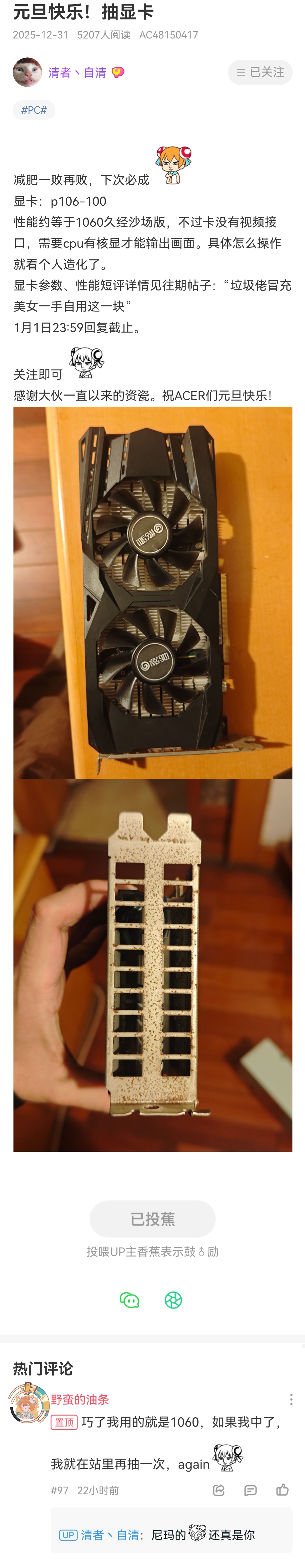且看前情提要:ac=48150417总而言之,言而总之,事情就是这样滴why这是我第二次在A站中奖啊啊啊为什么其他时候没中总之祝大伙新年快乐,也祝阿清哥减肥成功越来越烧。让我们再roll一次,回复即可
