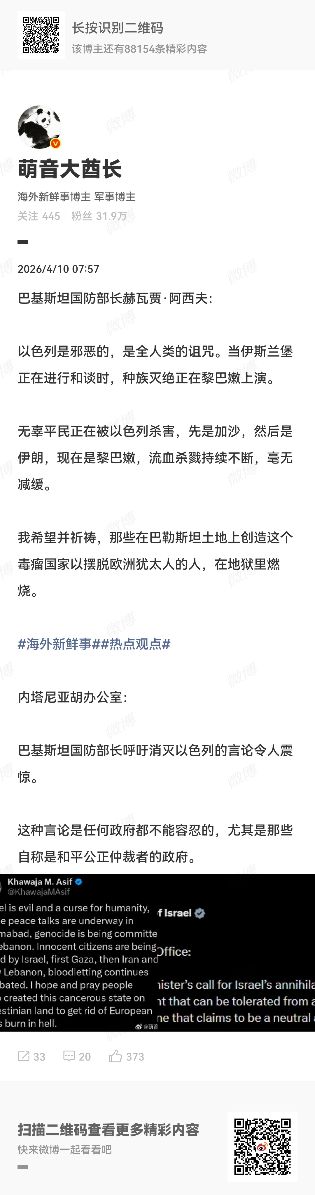 巴基斯坦呼吁严惩以色列,以色列表示不能忍