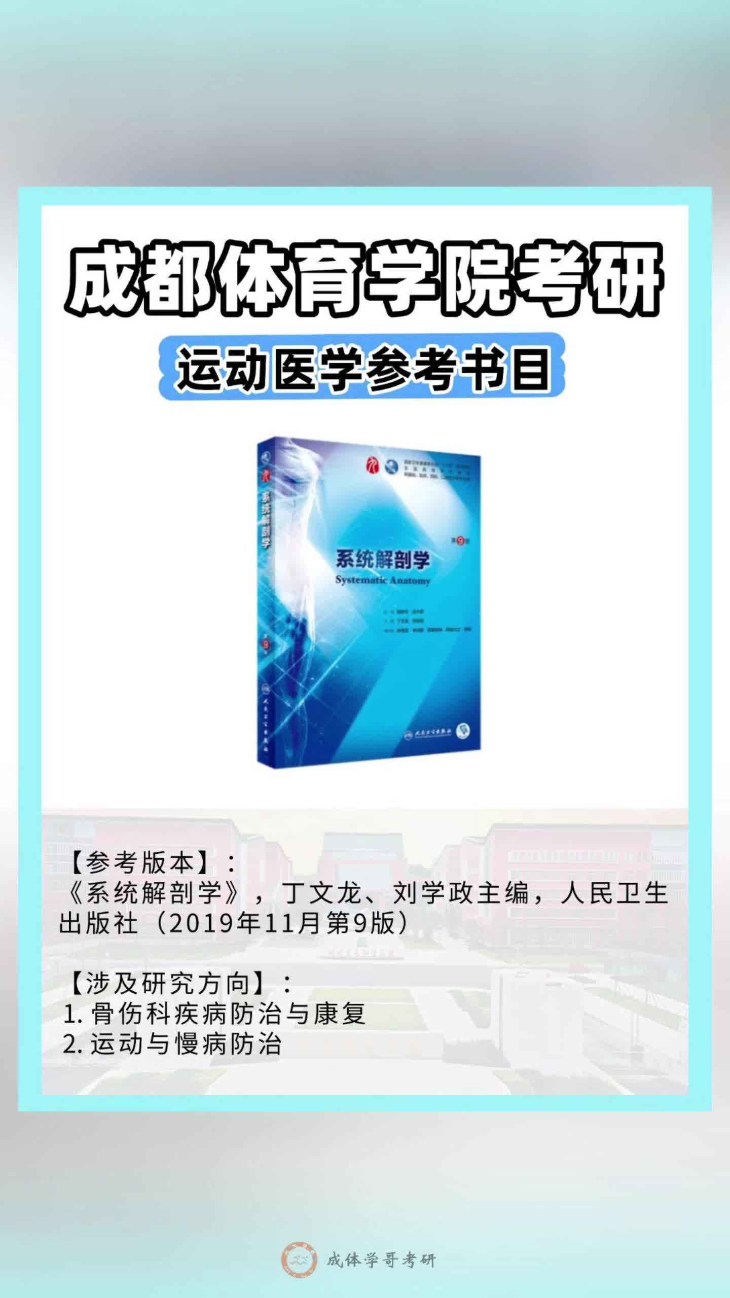 0次播放 | 00:12成体考研运动医学参考书目,成都体育学院621运动医学参考书目