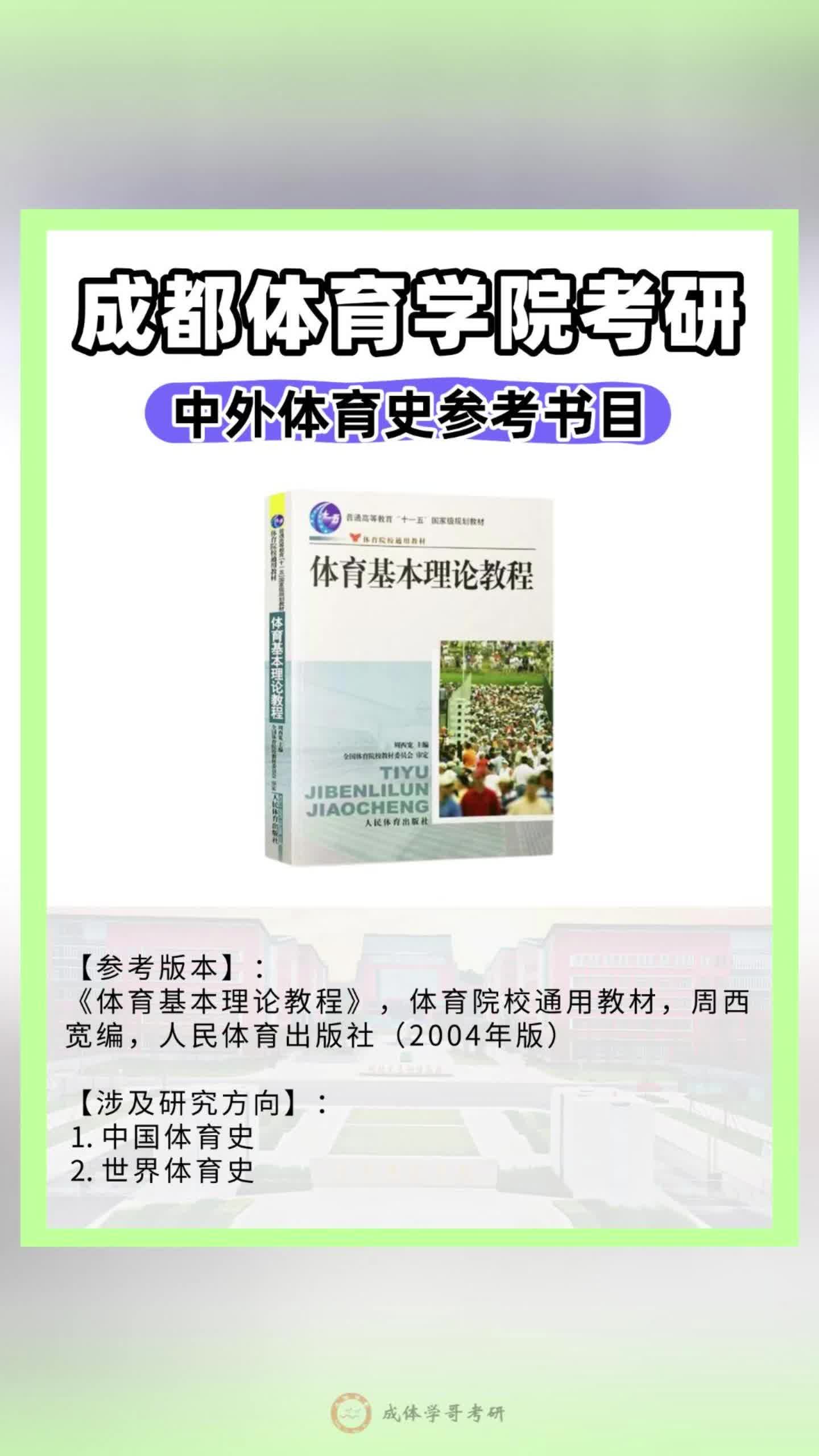 成体考研参考书目,成都体育学院考研617中外体育史初试参考书目