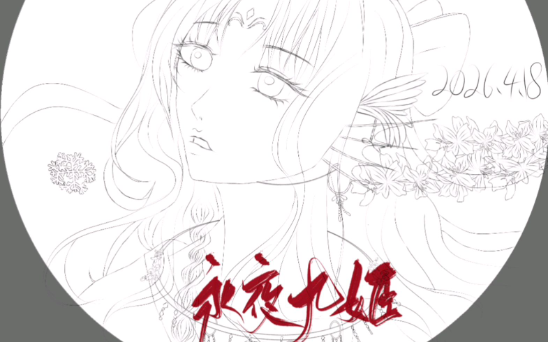 | 看桃花的少女,指绘线稿,图中水印是bilibili永夜九姬,此作品只允许欣赏,或评论。