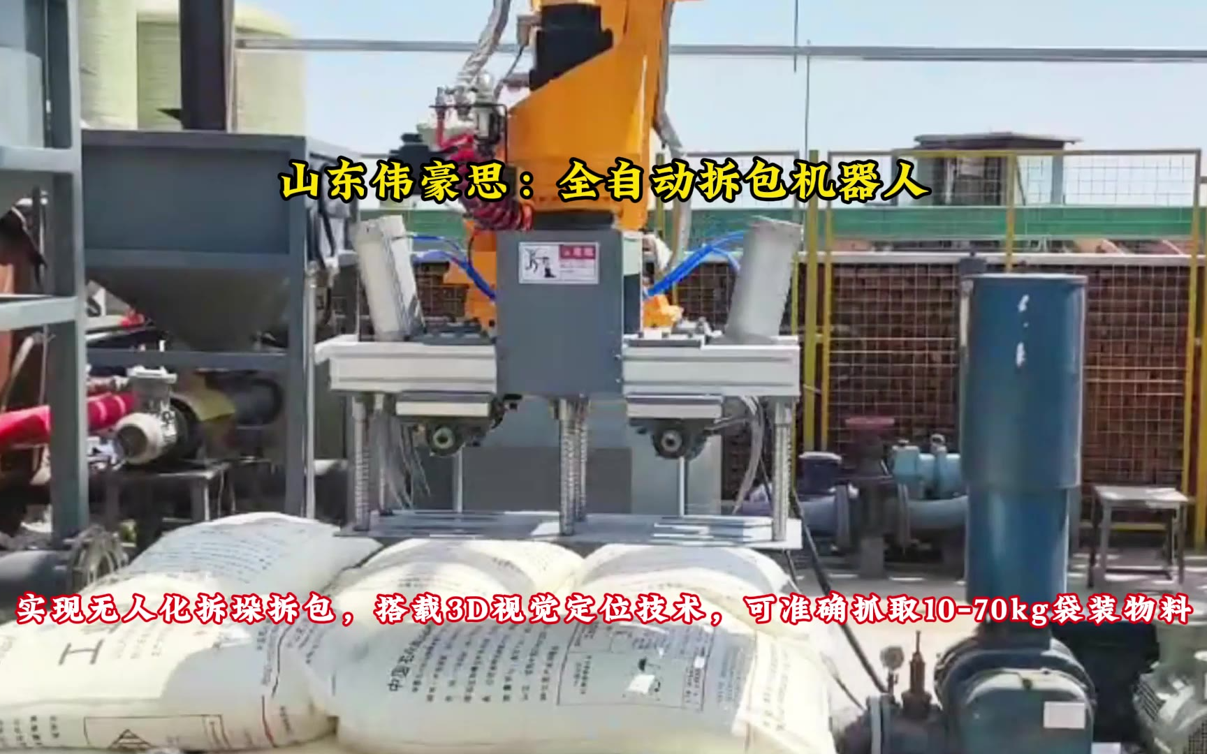 22次播放 | 00:33山东碳酸钙自动拆包机器人 50kg粉体自动拆垛拆包机械手