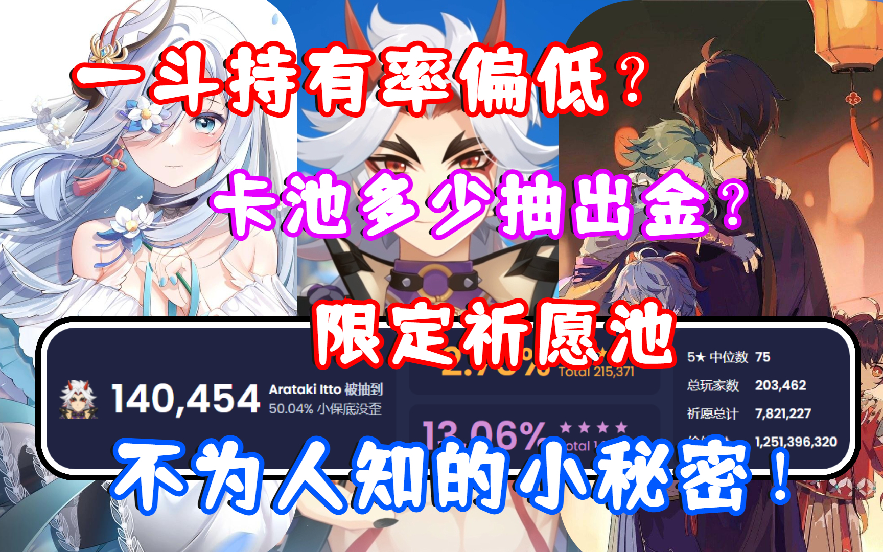 1023次播放 | 03:30(原神) 荒泷一斗持有率偏低?卡池多少抽出金?限定祈愿池不为人知的小秘密!