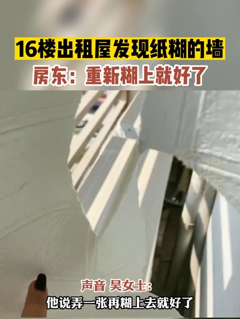 房东:重新糊上就好了...2月23日(发布时间),福建漳州。女子靠着出租房墙结果破洞发现是...