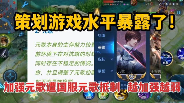策划游戏水平暴漏了!加强元歌遭到国服元歌集体抵制,越加强越弱