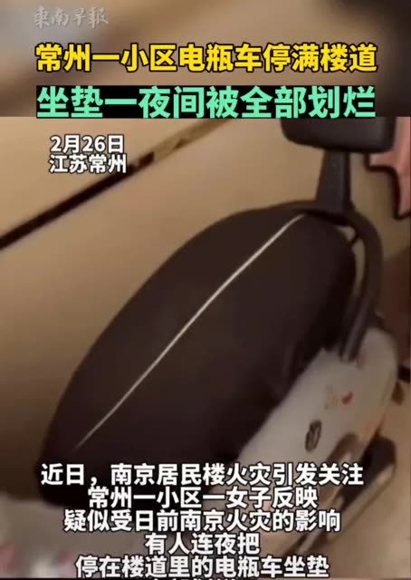 229次播放 | 01:00常州一小区电瓶车停满楼道,坐垫一夜间被全部划烂