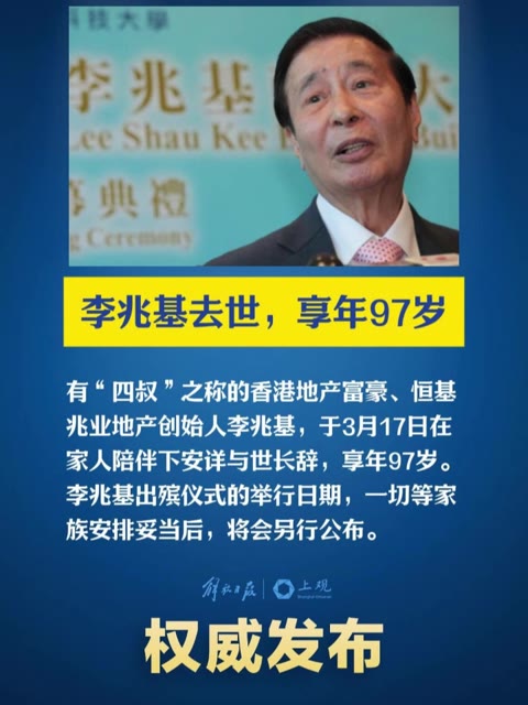 11次播放 | 03:26李兆基逝世,享年97岁。(澎湃新闻)
