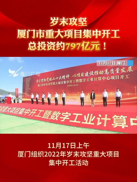 16次播放 | 00:09岁末攻坚!厦门市重大项目集中开工,总投资约797亿元!