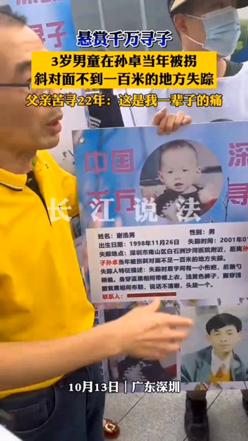 15次播放 | 00:302001年1月14日,3岁的谢浩男在深圳市南山区白石洲沙河医院附近失踪,22年毫无音讯。眉宇间...