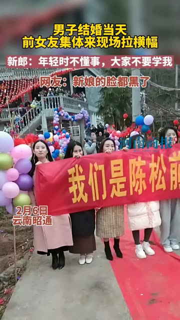 1284次播放 | 00:22男子结婚当天前女友组团来现场拉条幅,网友:新娘脸都黑了,可要花时间哄了!
