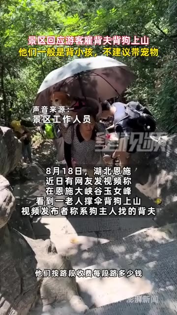 99次播放 | 00:58景区回应游客雇背夫背狗上山:他们一般是背小孩,不建议带宠物