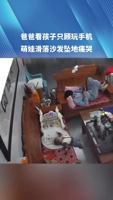 0次播放 | 00:48爸爸看孩子只顾玩手机,萌娃滑落沙发坠地痛哭