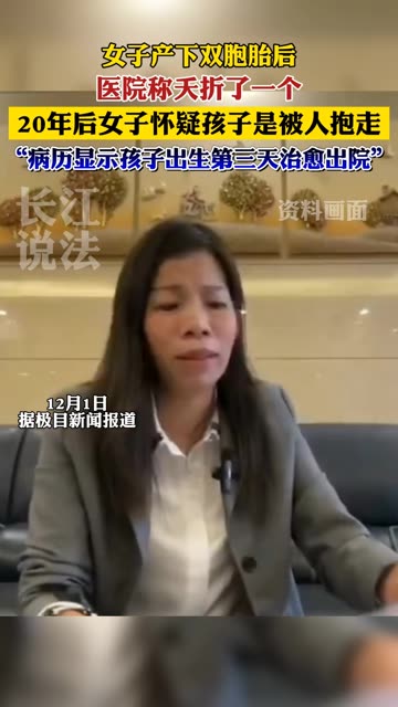 30次播放 | 01:32女子产下双胞胎医院告知夭折了一个,20年后她发现蹊跷,警方:正调查是否涉拐卖。