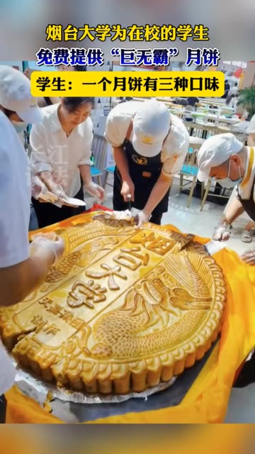 11次播放 | 01:17烟台大学食堂200斤大月饼开切!学生排长队品尝,错过再等1年