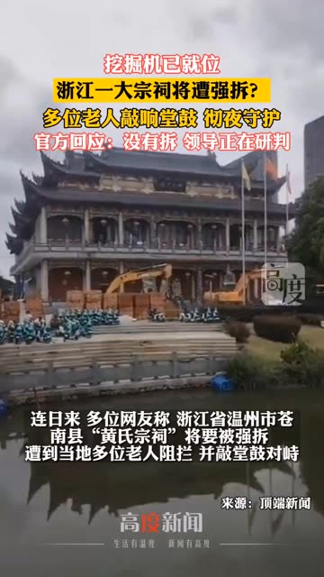 0次播放 | 02:12浙江一大宗祠将被强拆?多位老人为表示抗议敲响堂鼓,彻夜守护
