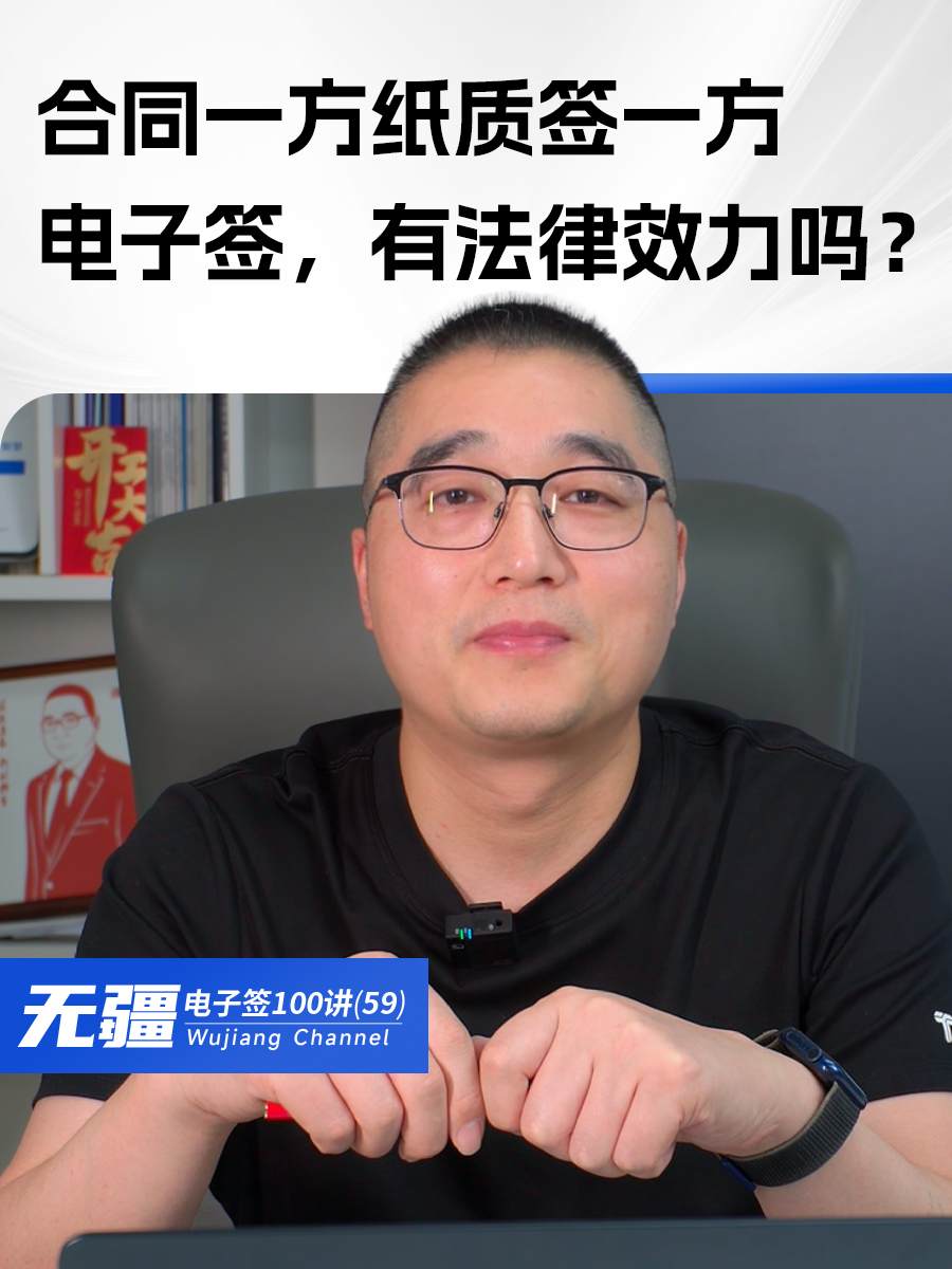 0次播放 | 01:41无疆电子签百讲(59):合同一方纸质签一方电子签,有法律效力吗