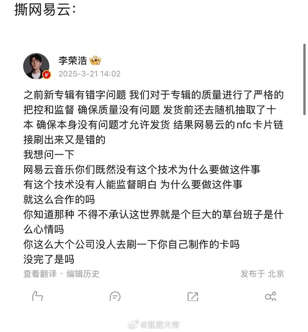 1752次播放 | 03:15李荣浩本人直接指责单依纯强行侵权