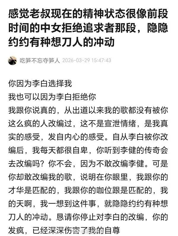 来源:中国蓝新闻、浙江宣传这两天,演艺圈又起风波。歌手李荣浩在社交平台公开喊话,称单依纯方在未获得授权的情况下,于巡回演唱会深圳场“强行侵权演唱”其代表作《李白》。值得注意的是,李荣浩方此前已明确“婉