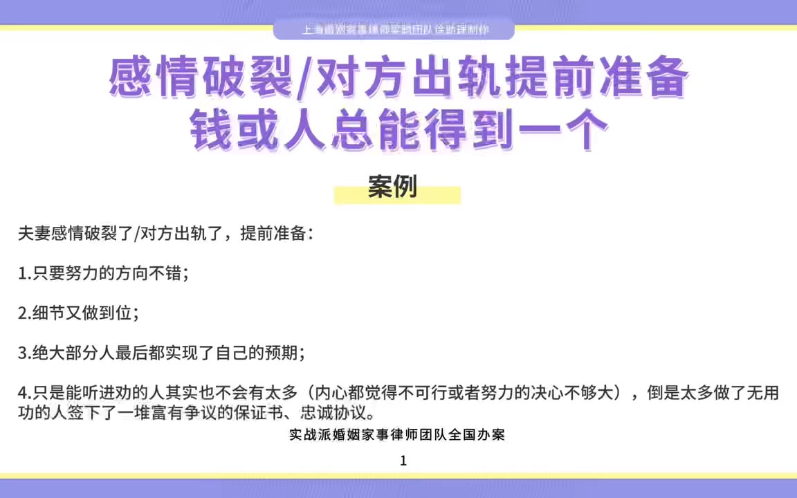 上海婚姻律师:感情破裂/对方出轨提前准备,钱或人总能得到一个