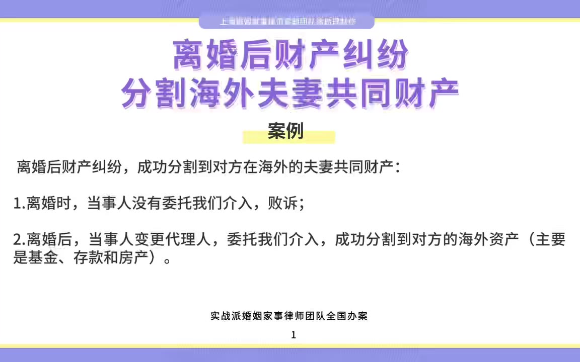 0次播放 | 00:12上海婚姻家事律师梁聪:离婚后财产纠纷,分割海外夫妻共同财产