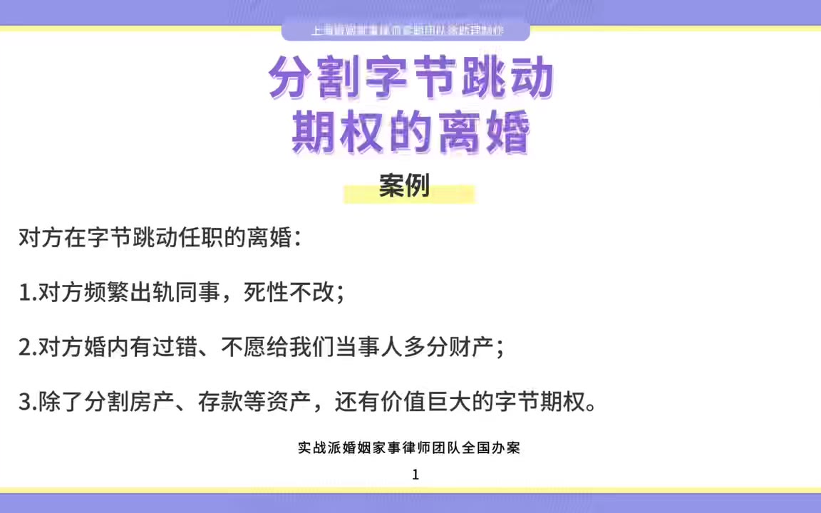 0次播放 | 00:13上海离婚律师梁聪律师团队原创:分割字节跳动期权的离婚