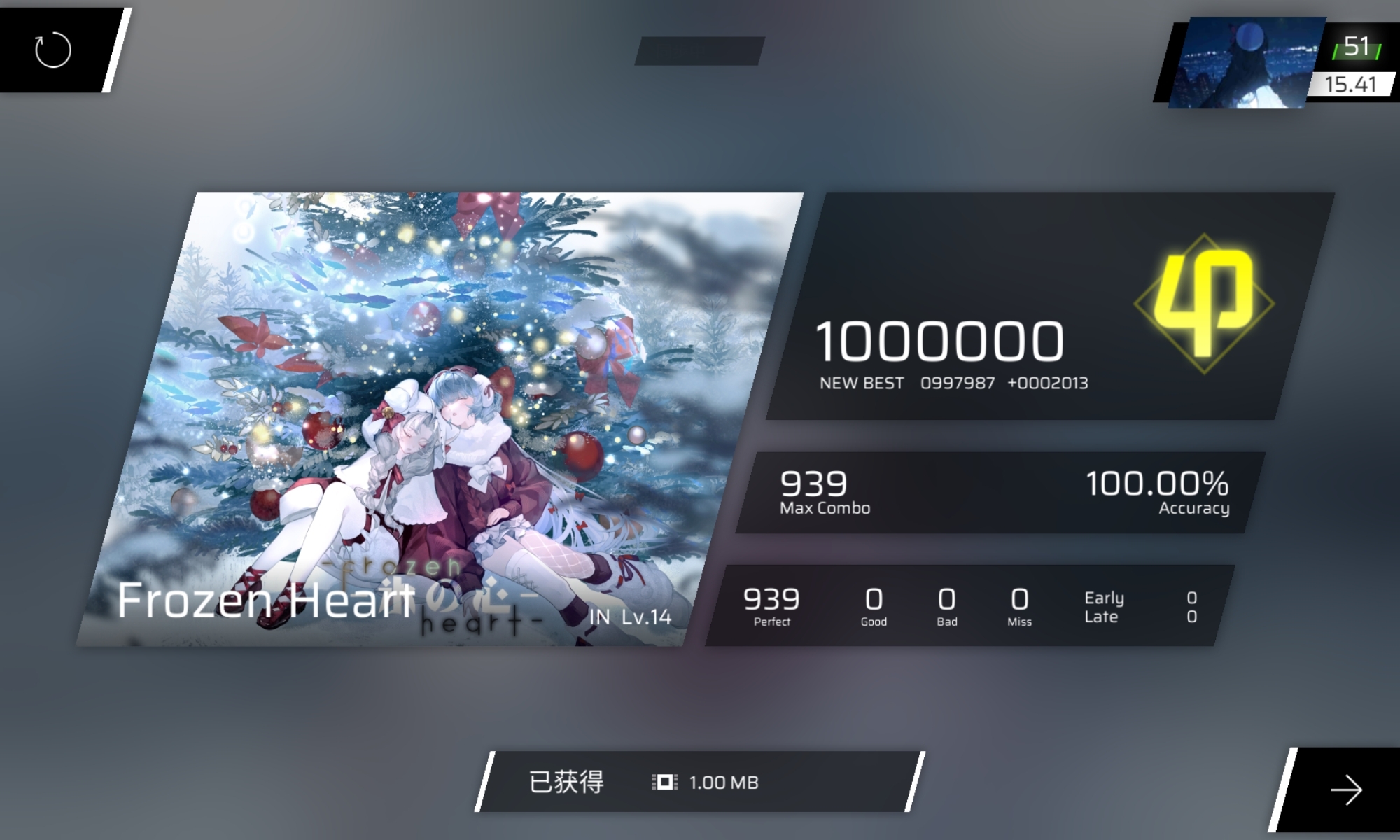240次播放 | 02:11『 Phigros /雪降り~雪が降っている~』 AT Lv .14 All Perfect