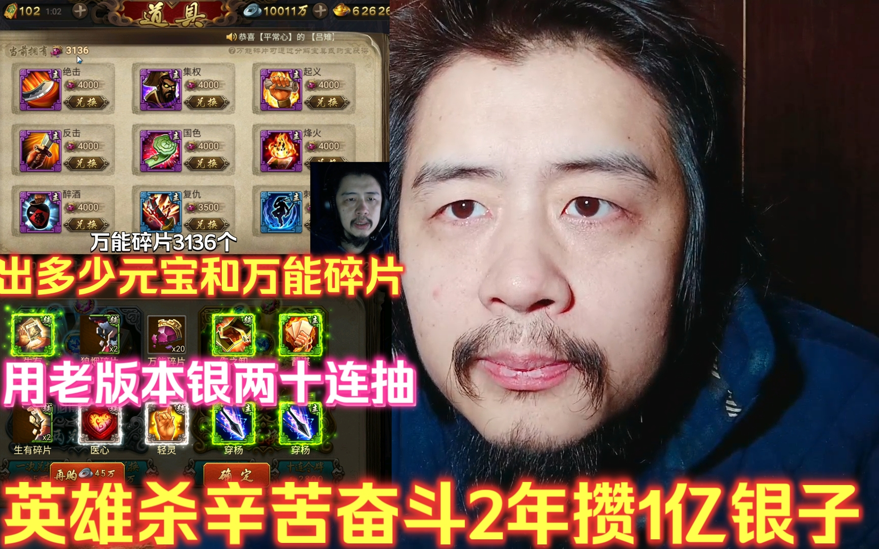 1.2万次播放 | 10:38英雄杀辛苦奋斗2年攒1亿银子,用老版本银两十连抽,出多少元宝和万能碎片?