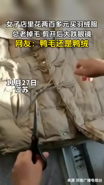 34次播放 | 01:12女子店里花两百多元买羽绒服,总老掉毛,剪开后大跌眼镜,网友:鸭毛还是鸭绒
