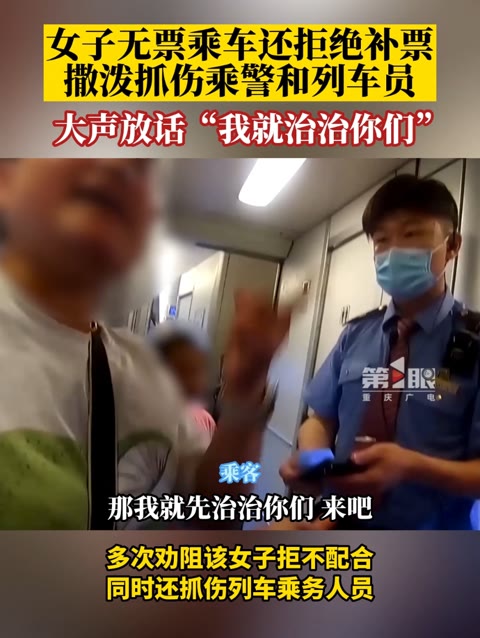 0次播放 | 00:09女子无票乘车还拒绝补票,撒泼抓伤民警和列车员,并且大声放话:“我就治治你们。”