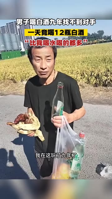 0次播放 | 02:02男子喝白酒九年找不到对手,一天喝十几瓶白酒。