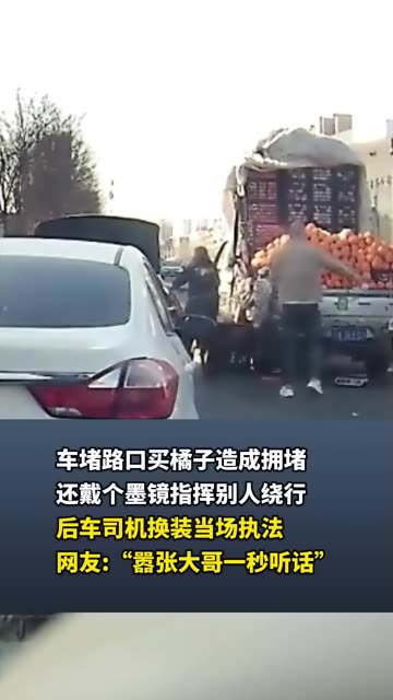 11次播放 | 01:32车堵路口买橘子造成拥堵 还戴个墨镜指挥别人绕行 后车司机换装当场执法 网友:“嚣张大哥一秒听话...