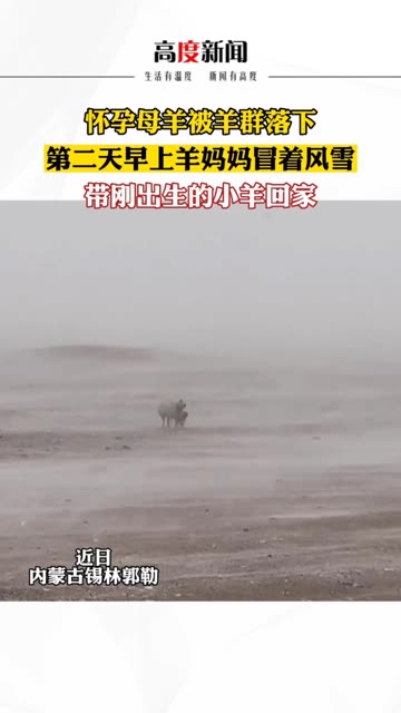 怀孕母羊被羊群落下,次日冒着风雪带着刚出生羊羔回家