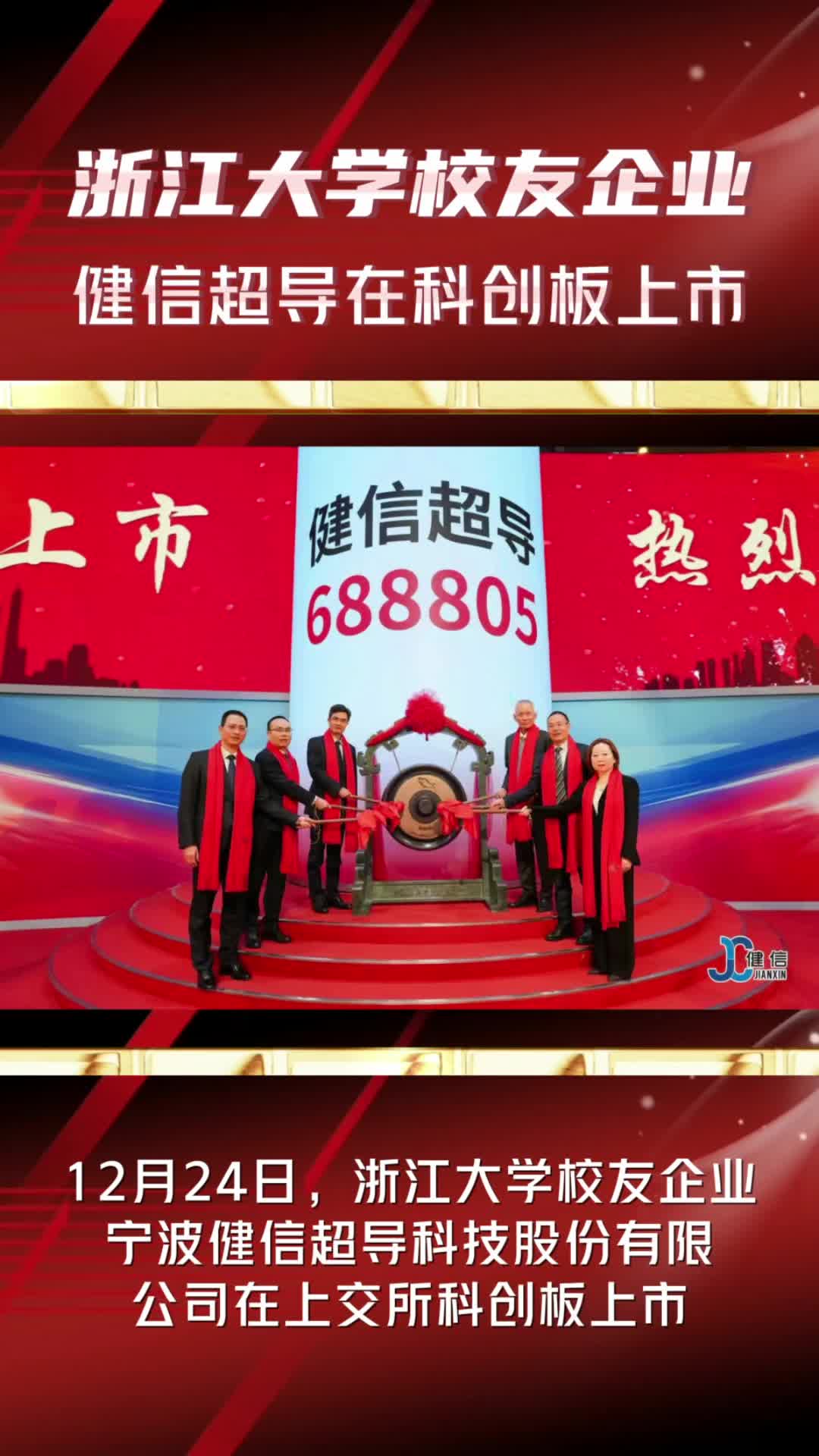 点击蓝字| 关注我们2025年12月24日浙江大学校友企业宁波健信超导科技股份有限公司(股票代码:688805)在上海证券交易所科创板上市姚海锋健信超导董事、总经理2001届浙江大学生物医学工程专业(