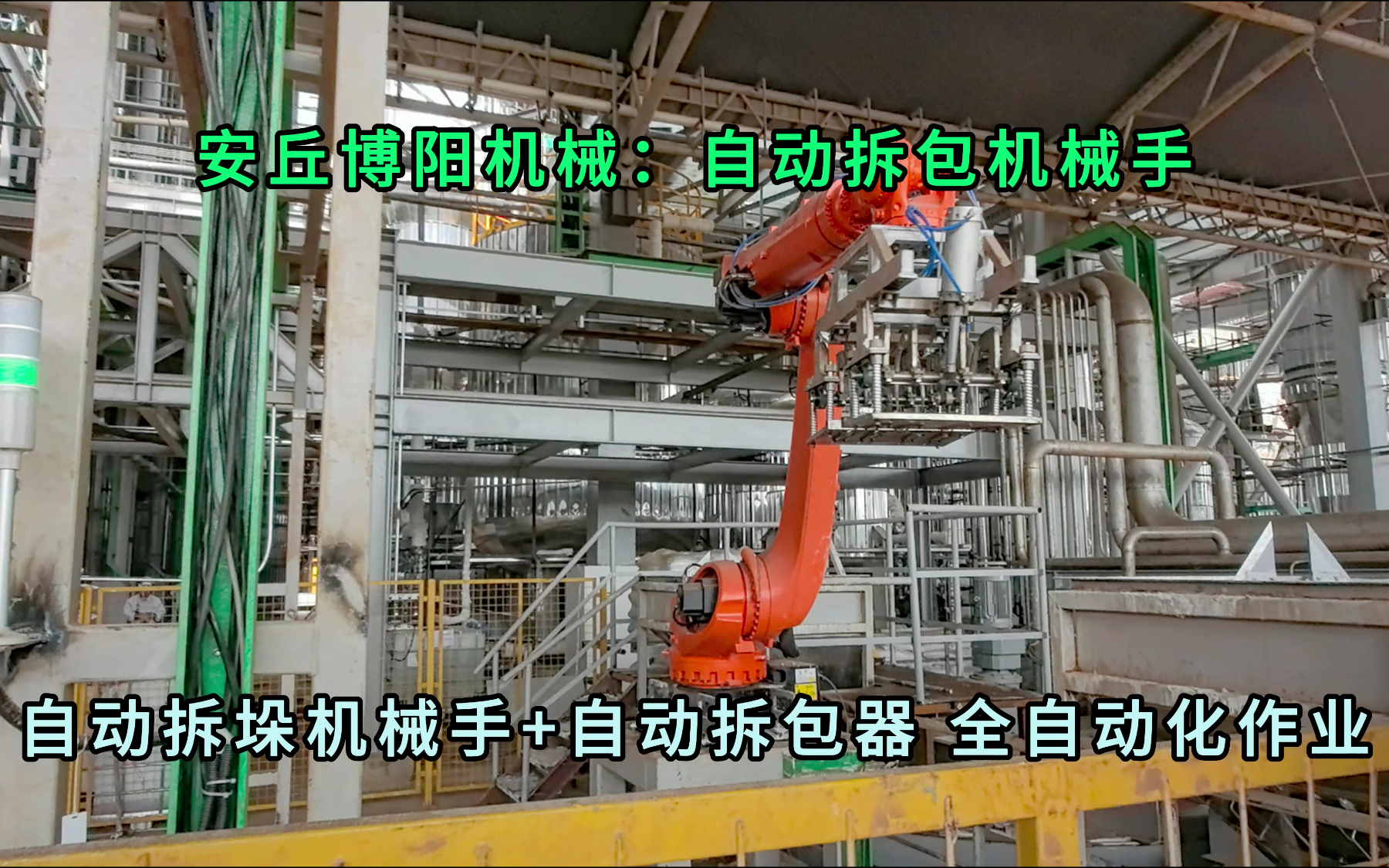 0次播放 | 00:28铝酸钙粉全自动拆包机器人 山东粉体全自动拆包机械手厂家